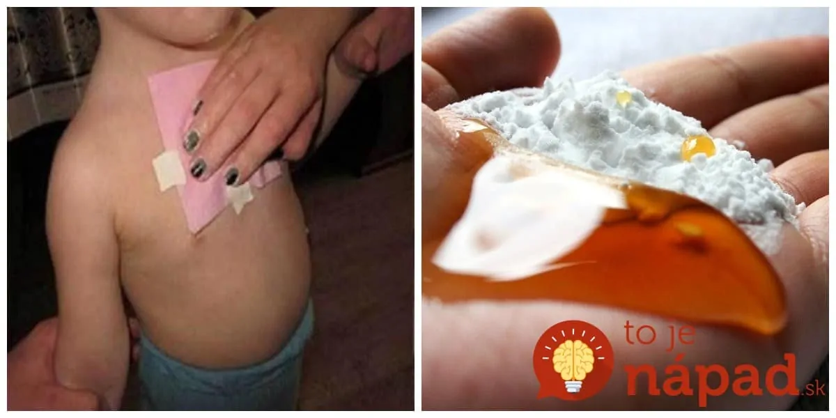 Hrudník natrieme nahriatou bravčovou masťou a nanesieme naň túto zmes. Prikryjeme fóliou, obtočíme šálom a prekryjeme dekou.