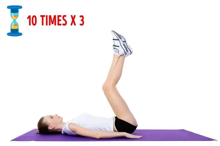 Znova zdvihnite nohy. Pri nádychu nohy spúšťame a vydychujeme, keď ich dvíhame nahor. Ak je zdvihnutie narovnaných nôh pre vás príliš ťažké, môžete začať tým, že zdvíhate nohy s prekríženými členkami.