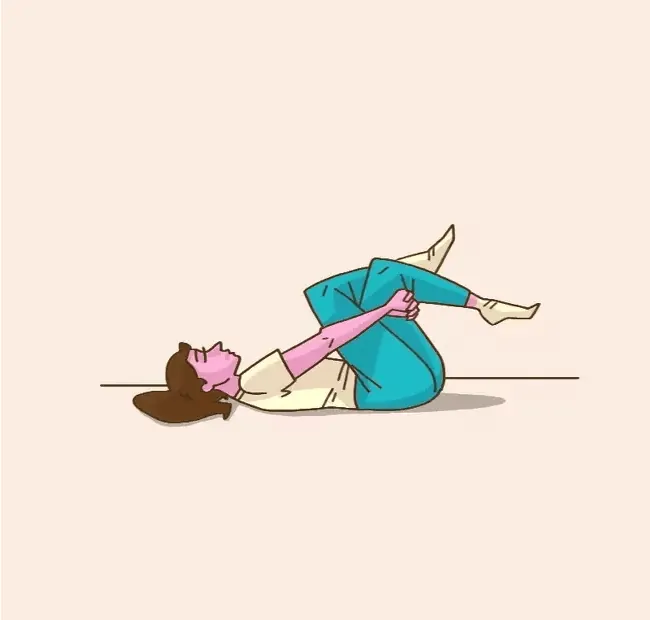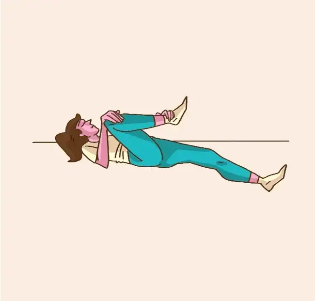 2. Uchopte nohy rukami a jemne pritiahnite koleno boľavej nohy k ramenu na tej istej strane.