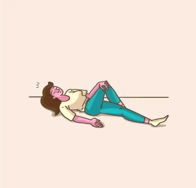 1. Prekročte nohy tak, aby boľavá noha bola hore a pritiahnite ich k sebe.