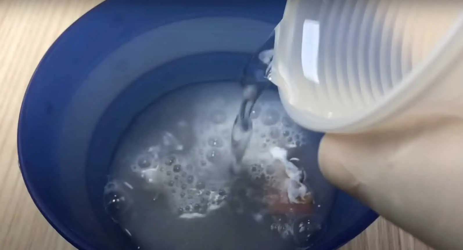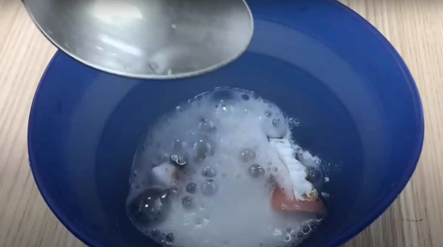 Položte protézu do misky a zasypte ju sódou bikarbónou. Pridajte ocot a nechajte roztok peniť.