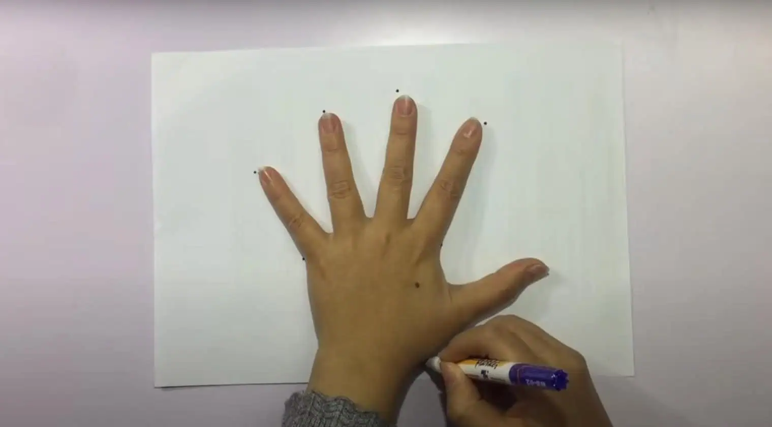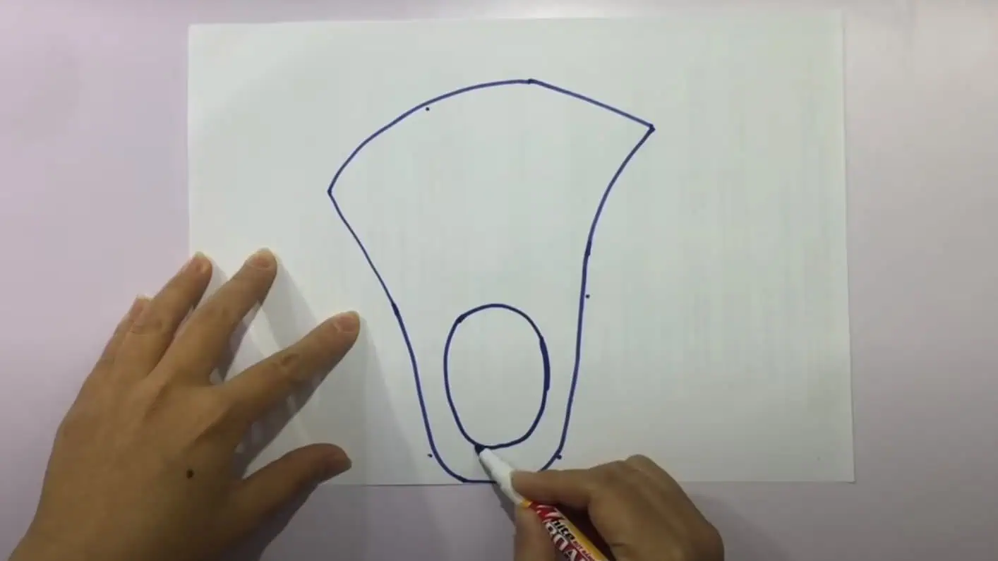 Zoberieme si papier, položíme naň ruku a nakreslíme si body podľa obrázka nižšie. Potom voľnou rukou body spojíme do tvaru rúška a nakreslíme aj otvor na ucho. Vystrihneme.