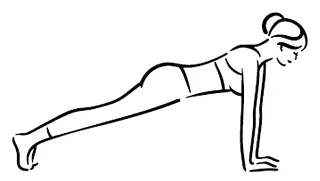 Inštrukcie: Dajte sa do polohy doska, oprite sa o lakte, nohy sú vystreté, telo je v jednej línii a všetky svaly musia byť napnuté.
