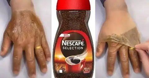 Do misky si nasypeme instantnú kávu a zmiešame so žĺtkom. Pridáme vitamín E a dobre premiešame.