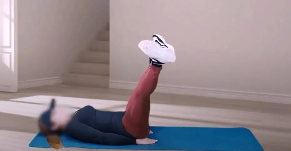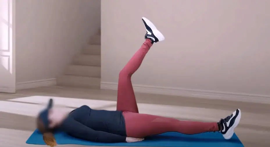 Ostaňte ležať na zemi, ale teraz zdvihnite nohy hore a striedavo ťahajte jednu a potom druhú nohu k zemi bez toho, aby ste ju položili na zem.