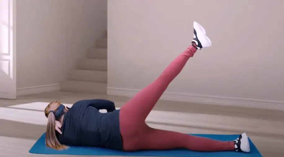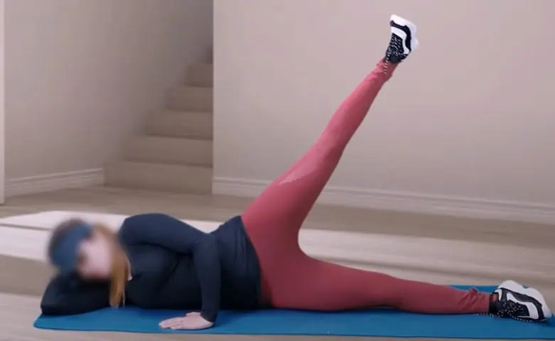 Ľahnite si nabok, spodná noha je vystretá, vrchnú nohu zdvíhajte hore, pričom svaly sú napnuté.