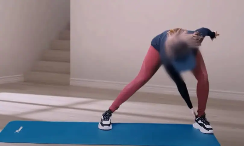 Opakujte výpady do jednej a potom do druhej strany, pričom východisková poloha je v strede a pri výpade sa vždy opačnou rukou dotknite chodidla.