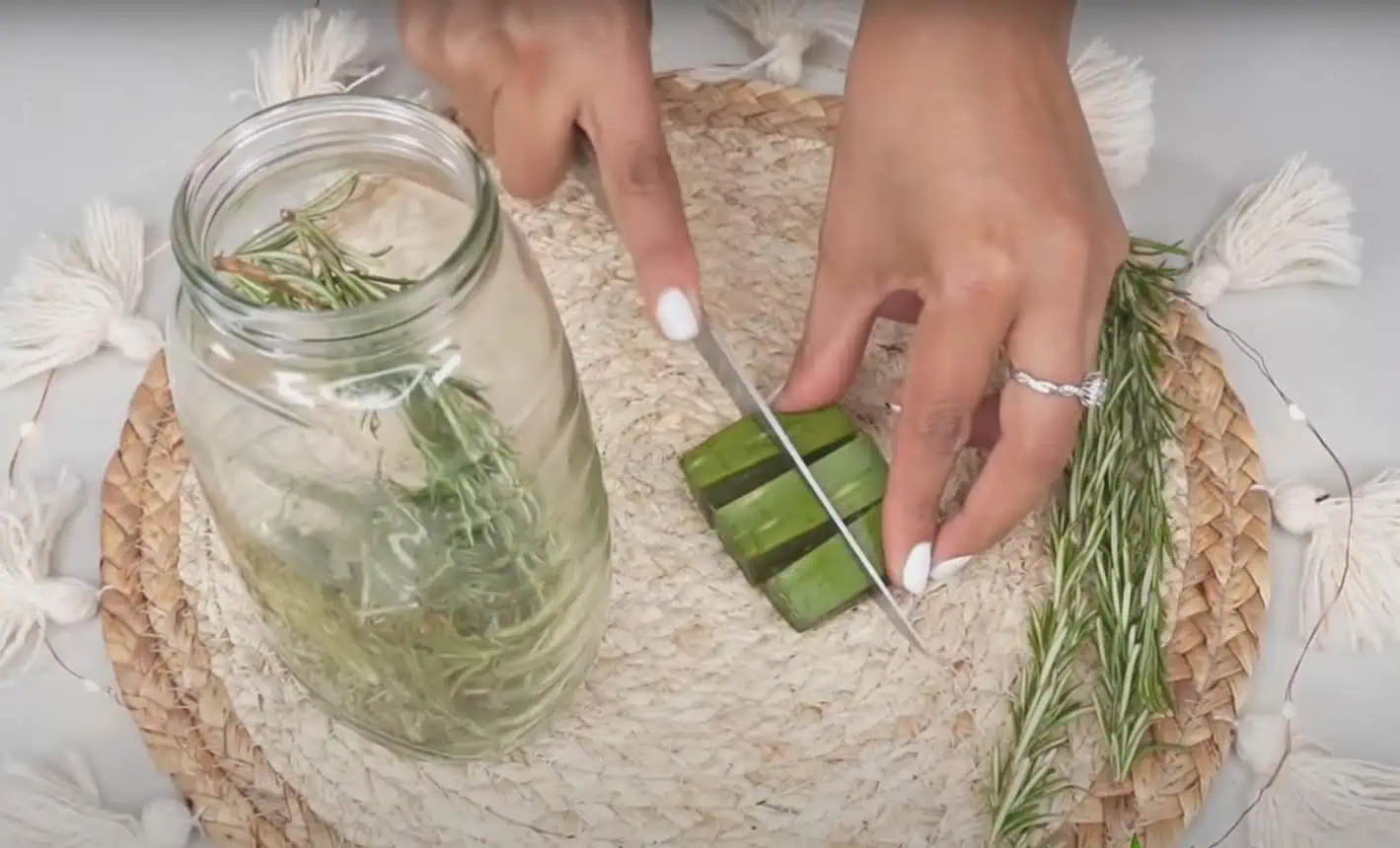 Potom si nakrájame aloe vera a pridáme do pohára k rozmarínu.