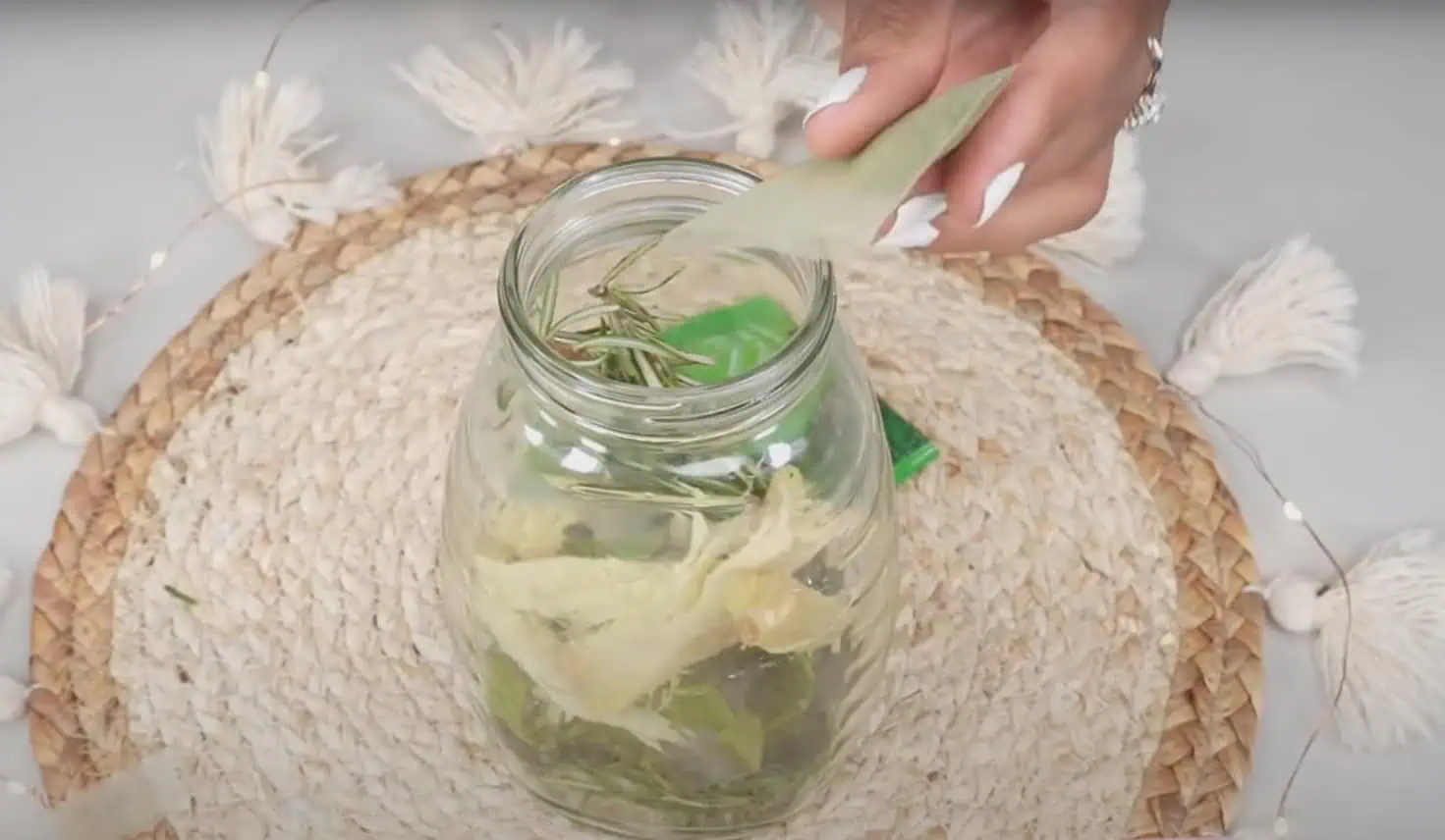Do pohára si natrháme lístky rozmarínu a pridáme aj celé vetvičky.