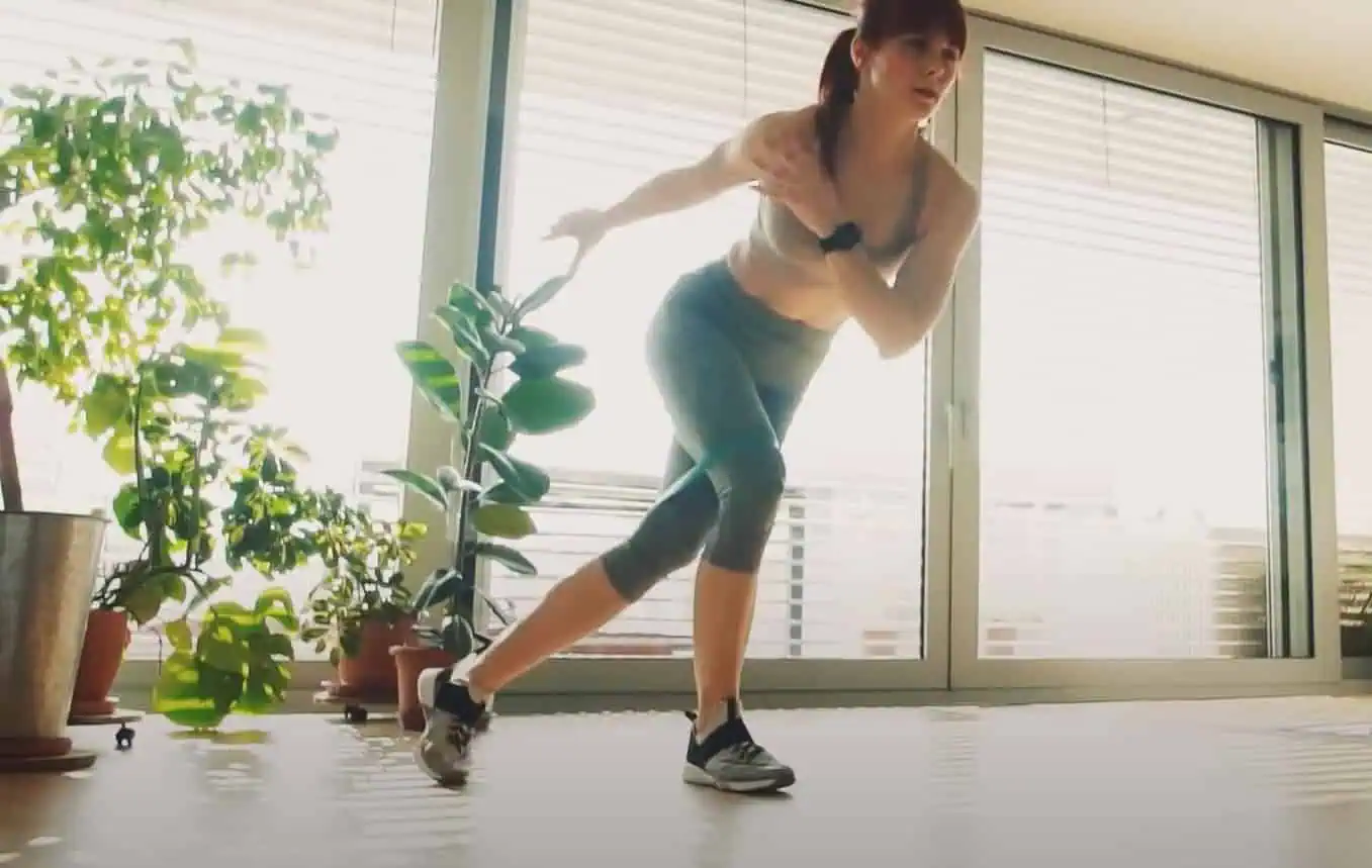 Preskakujte z jednej stany na druhú, pričom jednu nohu vždy ťahajte vystretú dozadu do kríža.