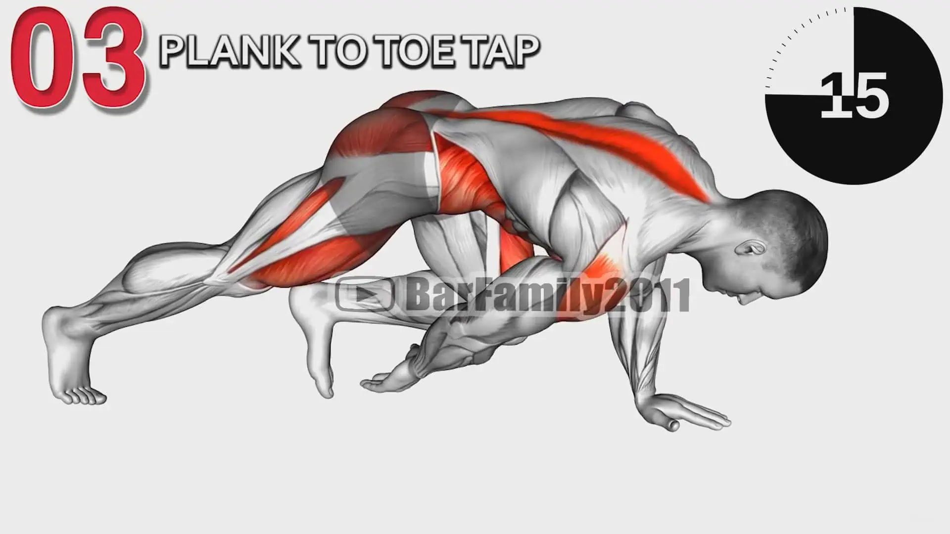Pri tomto cviku sa snažte vždy jednou rukou dotknúť opačnej špičky na nohe, pričom strany striedajte. Svaly sú napnuté, pravidelne dýchajte.