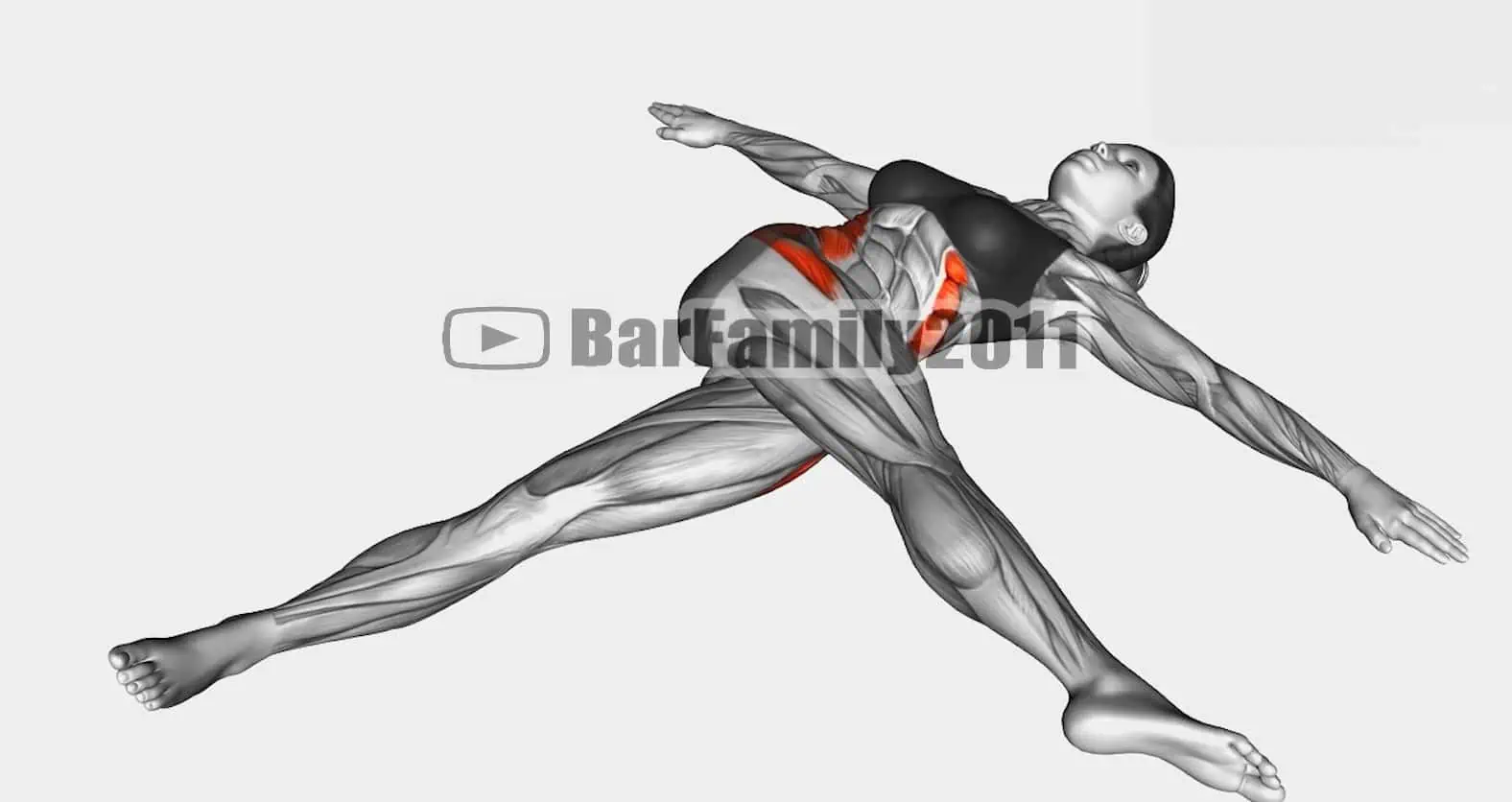 Ľahnite si na chrbát, zdvihnite vystreté nohy a pomaly ich rozťahujte od seba do strán.