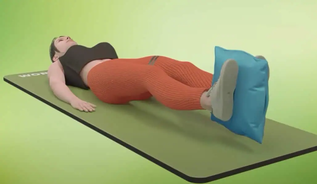 Ľahnite si rovno na podložku a medzi členky si vsuňte malý vankúš.