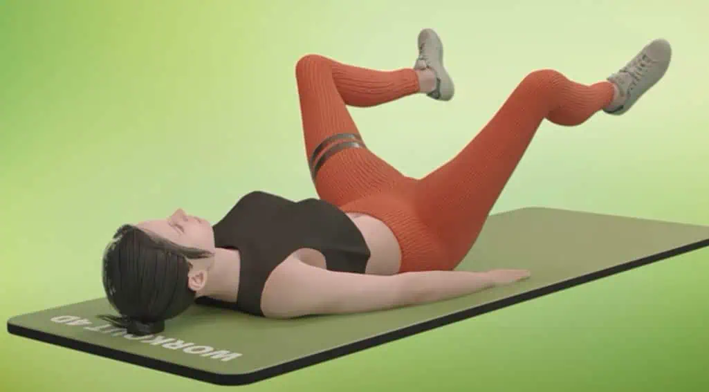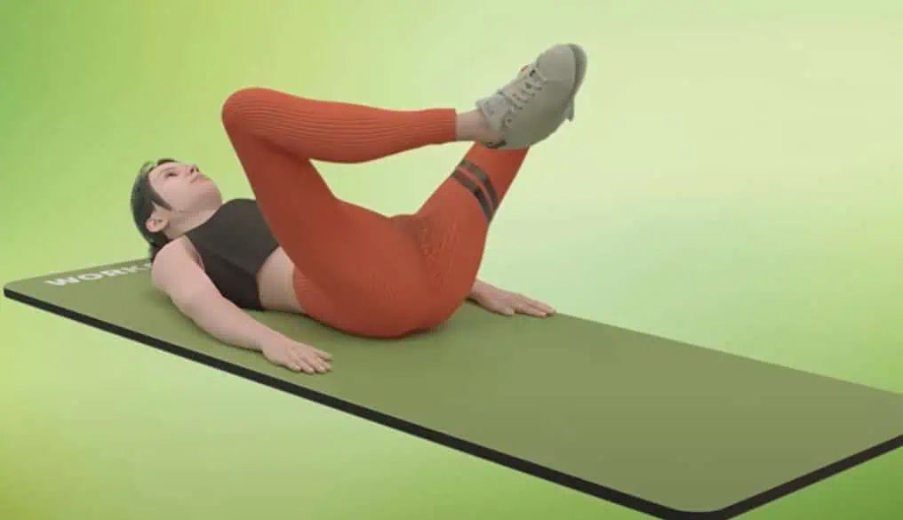 Teraz ťahajte jedno pokrčené koleno k lakťom, pričom druhá noha je vystretá.