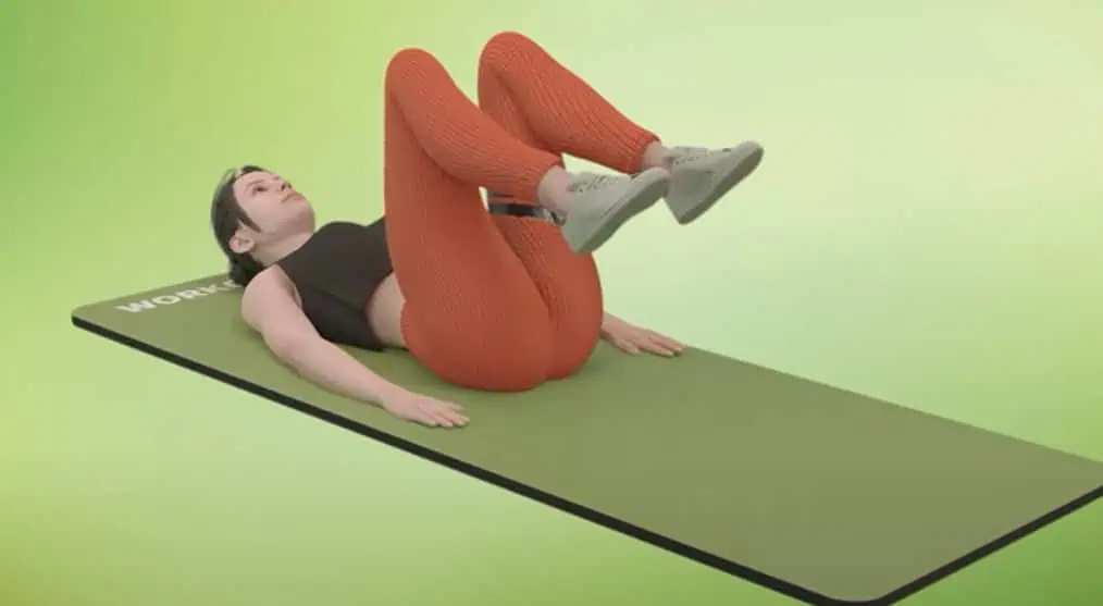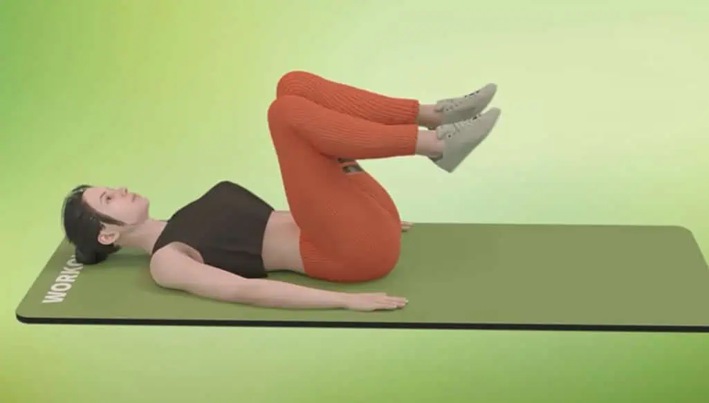 Ostaňte v rovnakej polohe, nohy sú pokrčené a chodidlá opreté o zem.