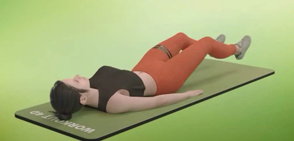 Ostaňte ležať v tej istej polohe, ale nohy pokrčte v kolenách a položte chodidlami na zem.