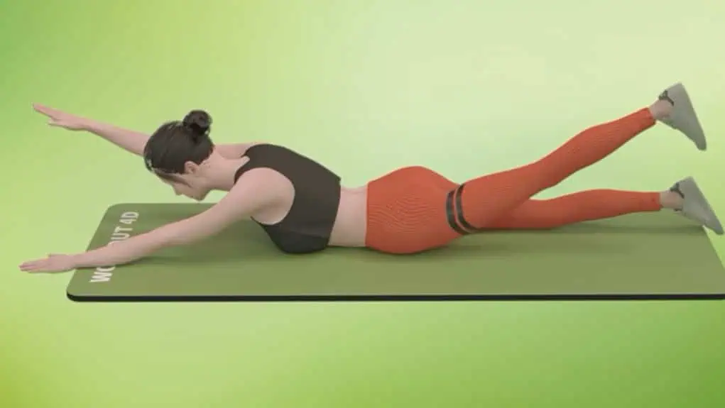Ľahnite si na brucho a ruky natiahnite pred seba dlaňami nadol.