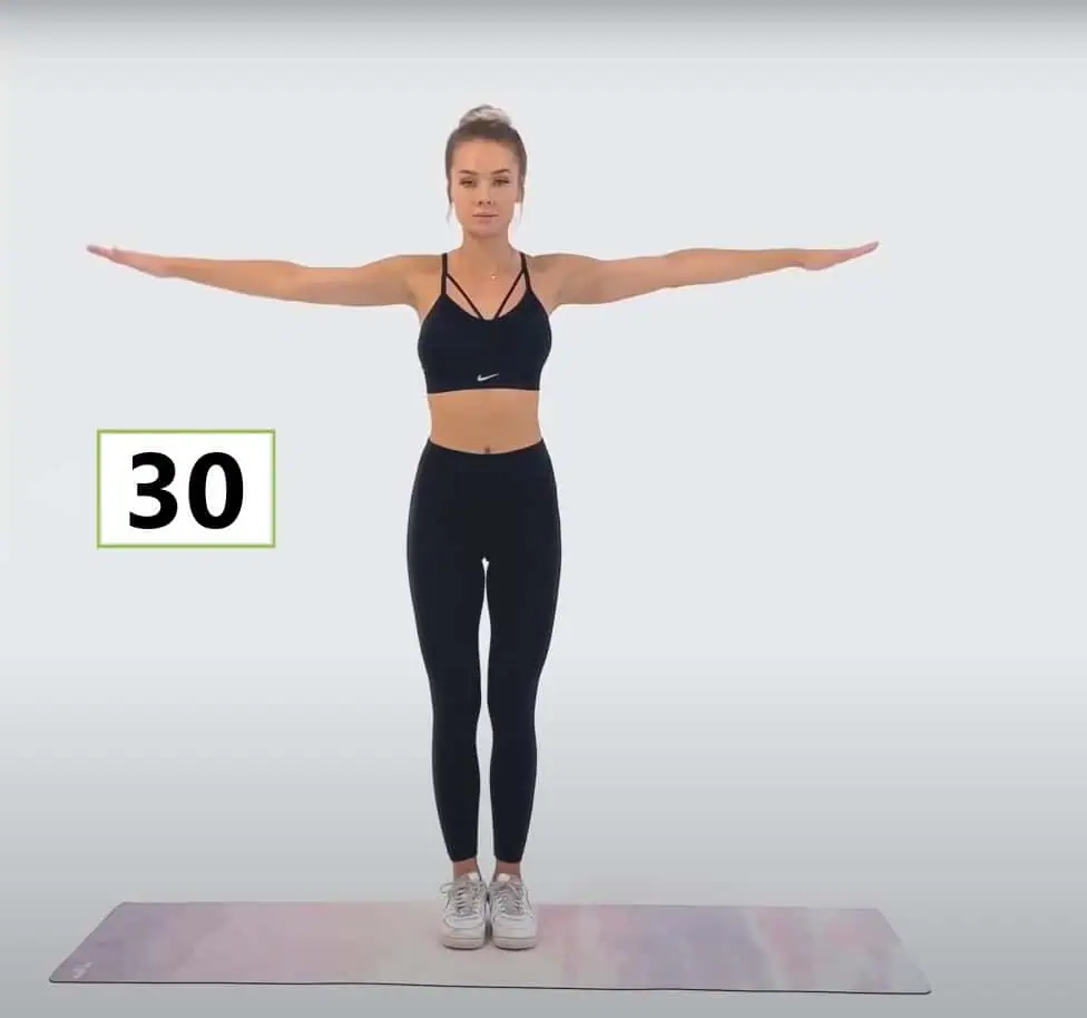 Postavte sa vzpriamene a rozpažte ruky.
