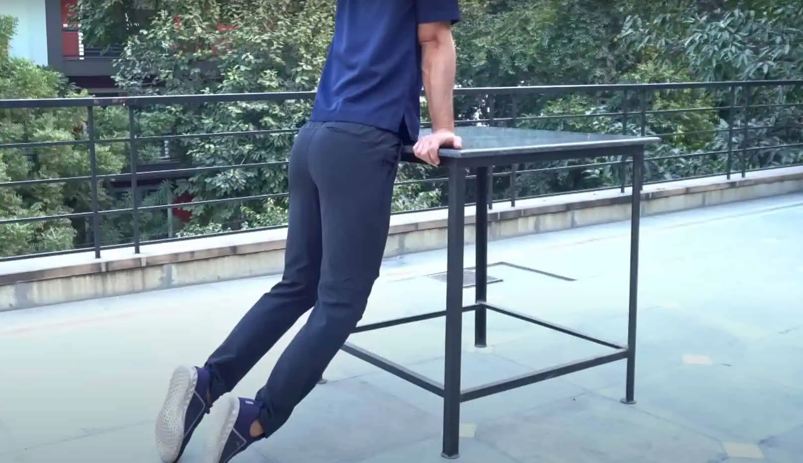Použite pevnejší stôl do ktorého sa zaprite dlaňami a nadvihnite telo tak, aby ste sa dotýkali zeme len prstami na nohách.