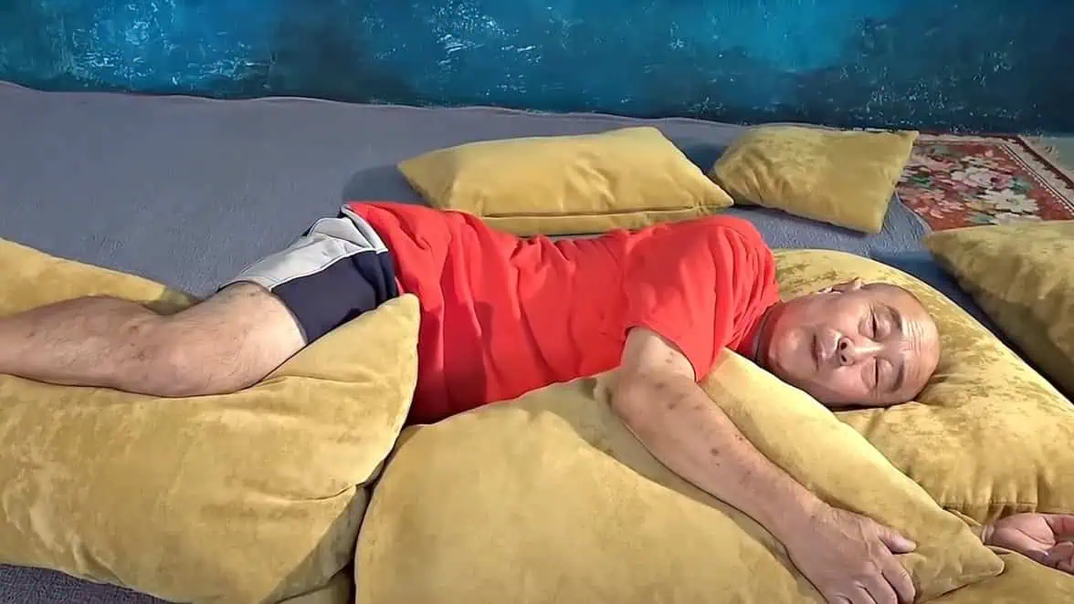 Používajte ďalší vankúš na podporu hrudníka a jeden medzi kolená, aby ste zabezpečili správne zarovnanie tela.