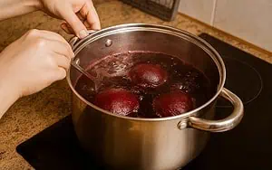 Čajník dáme na sporák a necháme zovrieť a keď voda vrie, povaríme asi 5 – 7 minút.