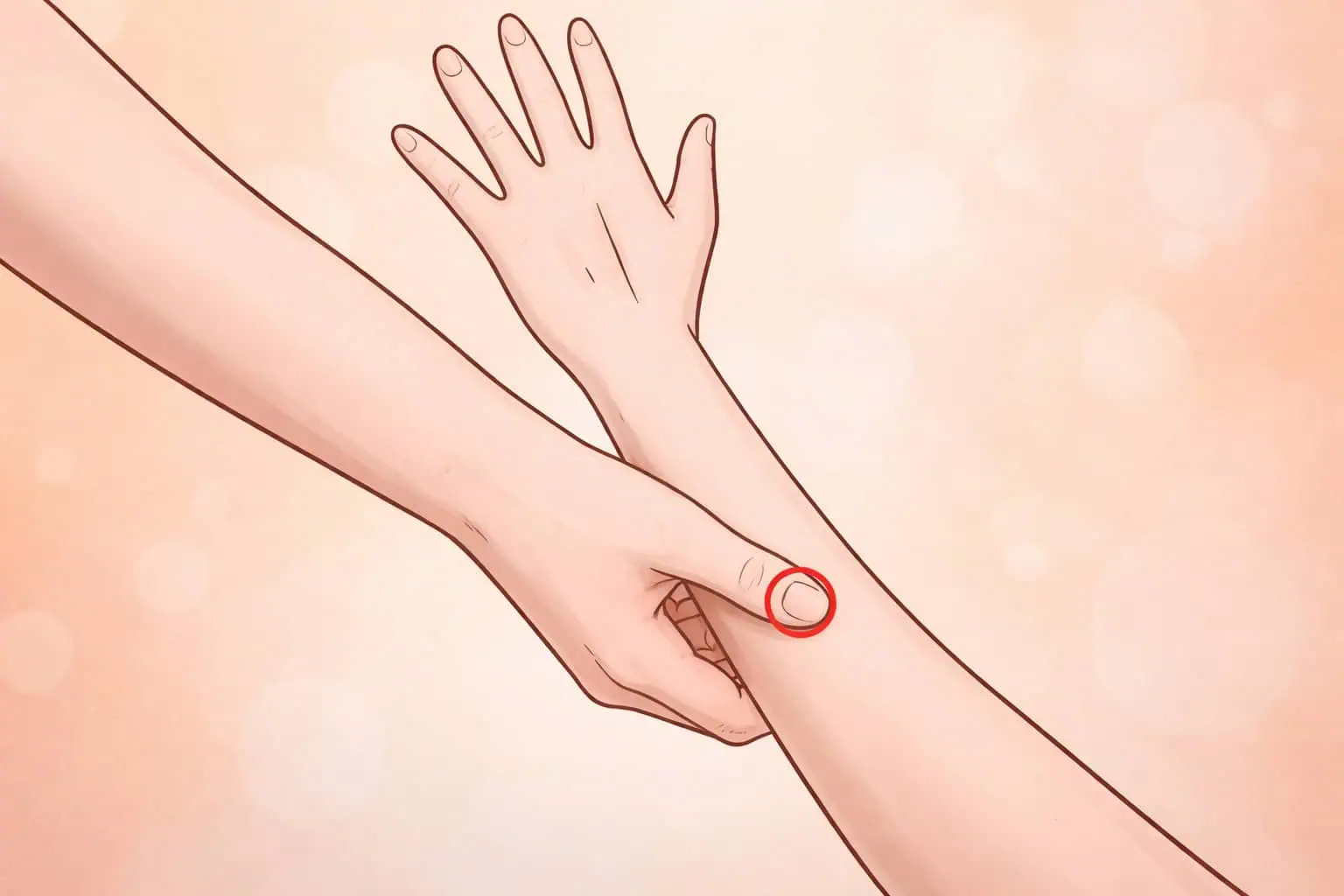 Palcom, alebo prstom druhej ruky tlačte na tento bod a to isté potom opakujte na druhej ruke. Bod stimulujte dovtedy, kým nepocítite úľavu.