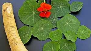 Ostrá chuť tejto rastliny rýchlo stúpa do nosa a mizne, pripomínajúc pikantné wasabi. Tento intenzívny chuťový zážitok naznačuje jej silné liečivé účinky, najmä v boji